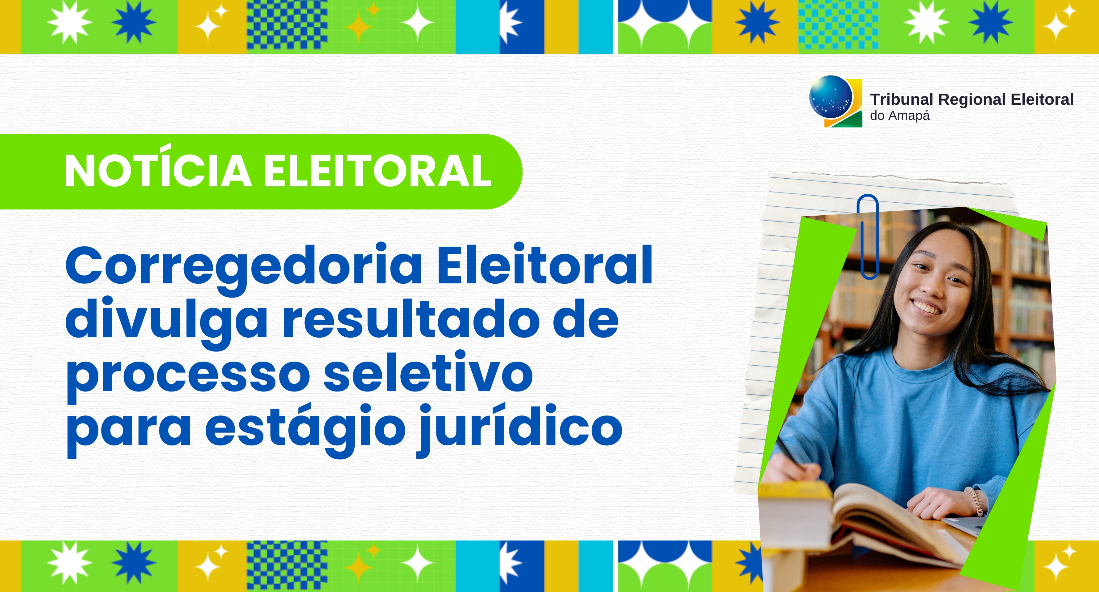 CRE-AP divulga resultado de processo seletivo para estágio jurídicoAlém da vaga preenchida, os demais candidatos classificados irão compor cadastro reservahttps://www.tre-ap.jus.br/administracao/destaques/cre-ap-divulga-resultado-de-processo-seletivo-para-estagio-juridicohttps://www.tre-ap.jus.br/@@site-logo/logo.jpg