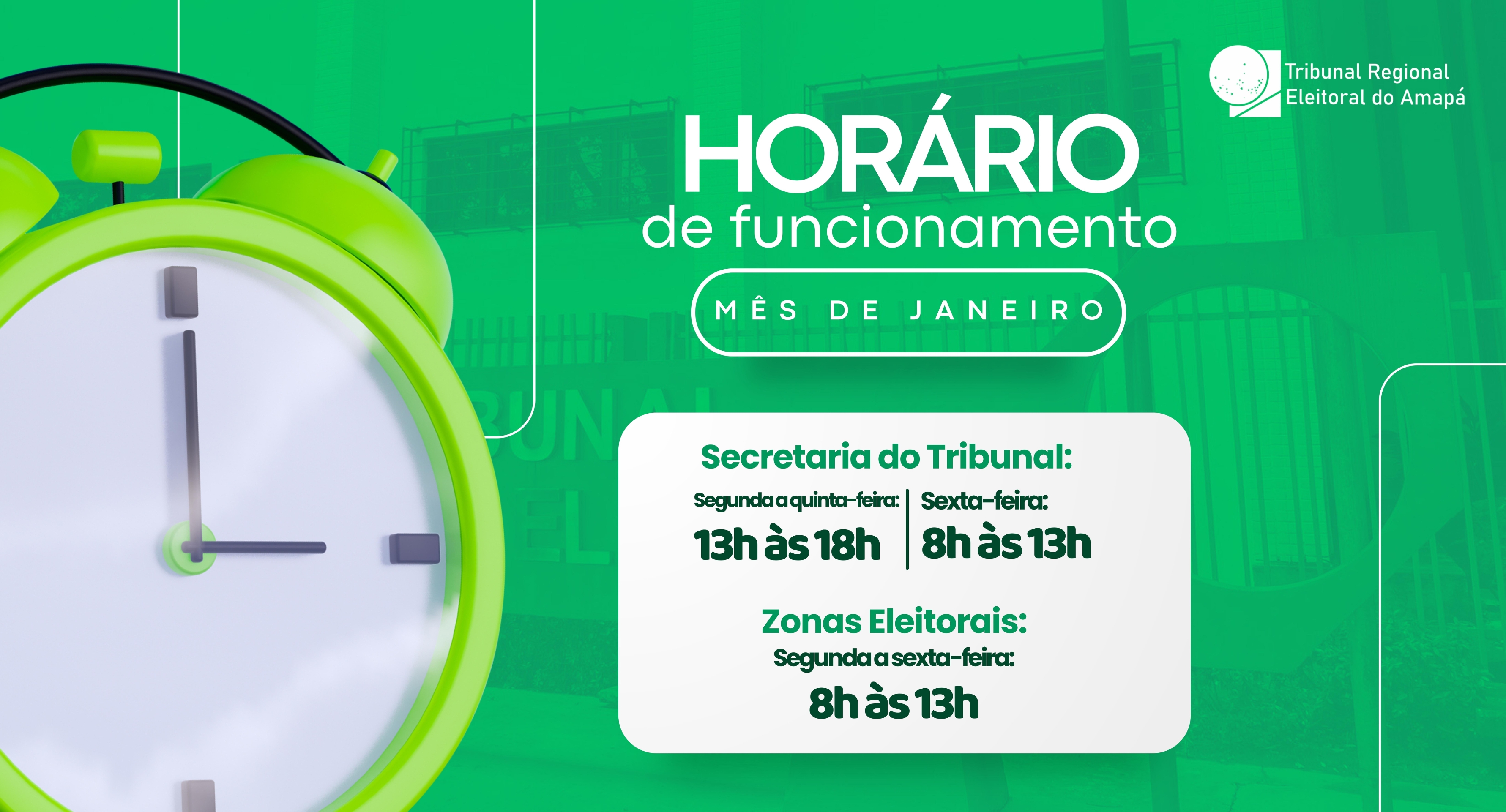 TRE Amapá adota horário especial de funcionamento em janeiroO horário normal de funcionamento será retomado a partir de 1º de fevereirohttps://www.tre-ap.jus.br/administracao/destaques/tre-amapa-adota-horario-especial-de-funcionamento-em-janeiro-1https://www.tre-ap.jus.br/@@site-logo/logo.jpg